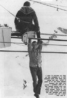 "But when he got there it was just getting dark and a frost had formed and there was no way he could hang on to it at all. So anyway, we put the hooks on him so he could go and then he just started sliding down the damn thing. But it was a good shot anyway: the snow was falling. Luckily, I had men stationed to catch him on the next big metal tower that they hang on these cables.
