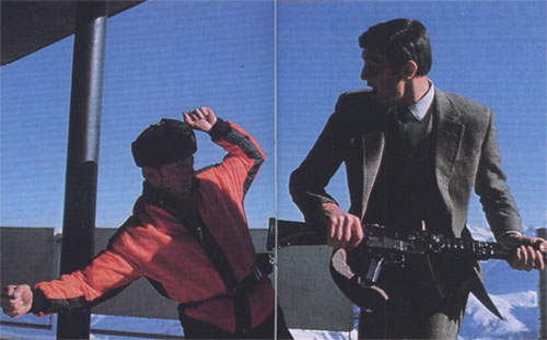 Exterior filming up at Piz Gloria was particularly difficult because the weather was not exactly as expected, as Hunt confesses. "We had the mildest winter for forty years. We couldn't believe it! But there you are; we overcame that by bringing the snow and putting it around and that sort of thing."