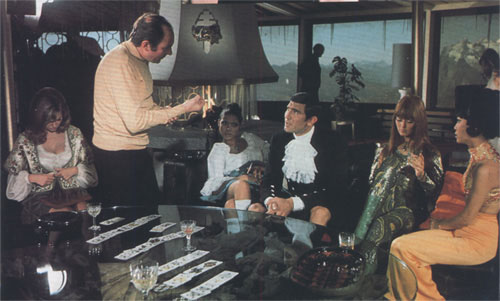 Back with the first unit, things were going reasonably smoothly. With all the waiting around, Telly Savalas was indulging his obsessive passion for gambling, which usually meant he was losing his money as quickly as he was earning it. Always on the lookout for a gambling partner, he even got George Lazenby in on it on one occasion.